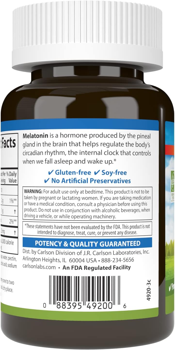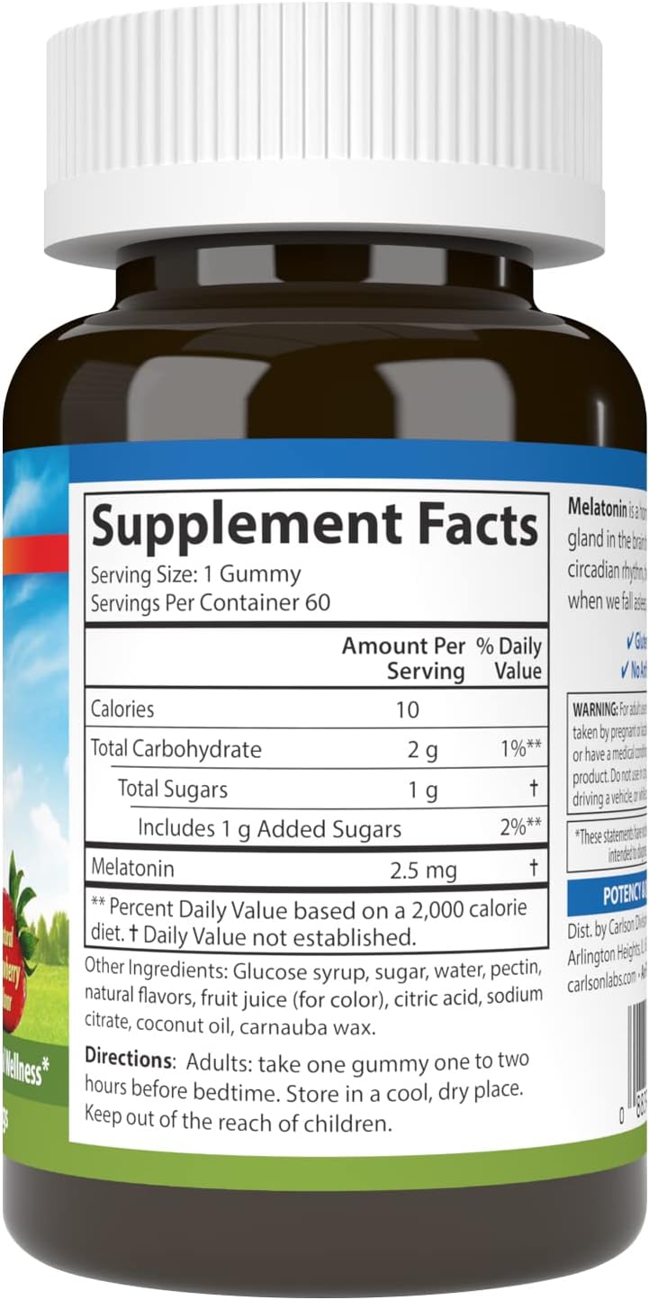 Carlson - Melatonin Gummies, 2.5 mg, Healthy Sleep, Promotes Relaxation, Natural Strawberry Flavor, 60 Gummies