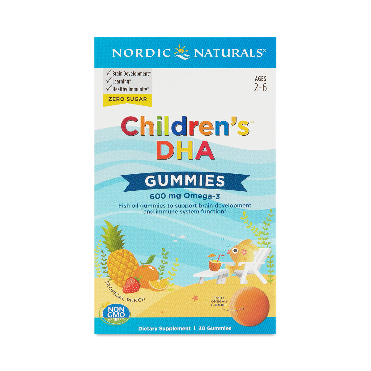 It can be hard for kids to get enough omega-3s, especially if they don't eat a lot of fish. But it's a safe bet that any child will try a yummy gummy. Children's DHA Gummies pack a substantial 600 mg daily serving of omega-3s into tasty, tropical punch flavor omega-3 gummies to support healthy brain development and learning.* Perfect for travel, these go-anywhere gummies come in individually sealed, shelf-stable packs for extra convenience. With fresh, pure, and effective omega-3 fish oil in a d...
