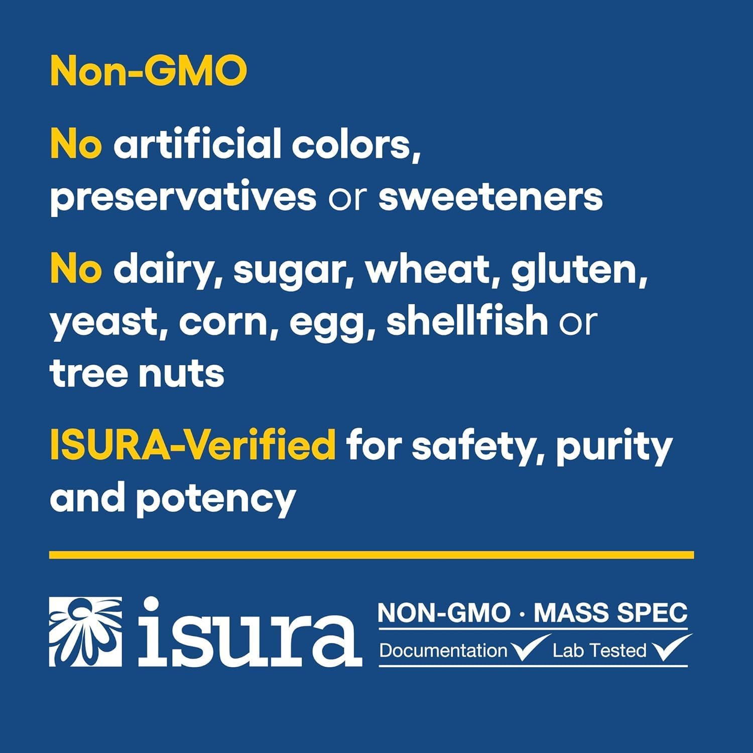 - Third-party certified and independently tested for GMOs and over 800 contaminants using advanced technology such as mass spectrometry to ensure purity and potency.