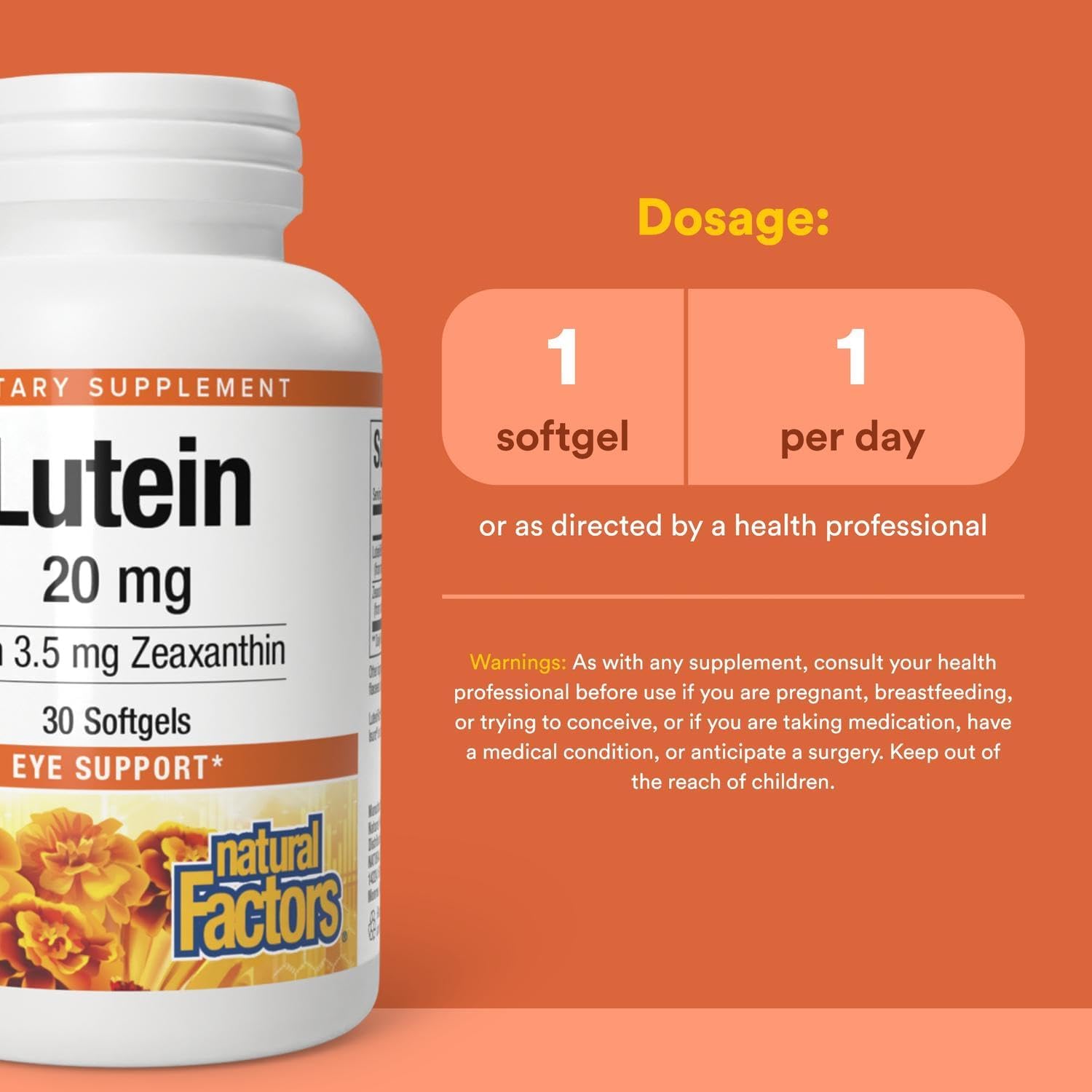 Natural Factors - Lutein 20mg, Natural Antioxidant to Support Eye Health, 30 Soft Gels