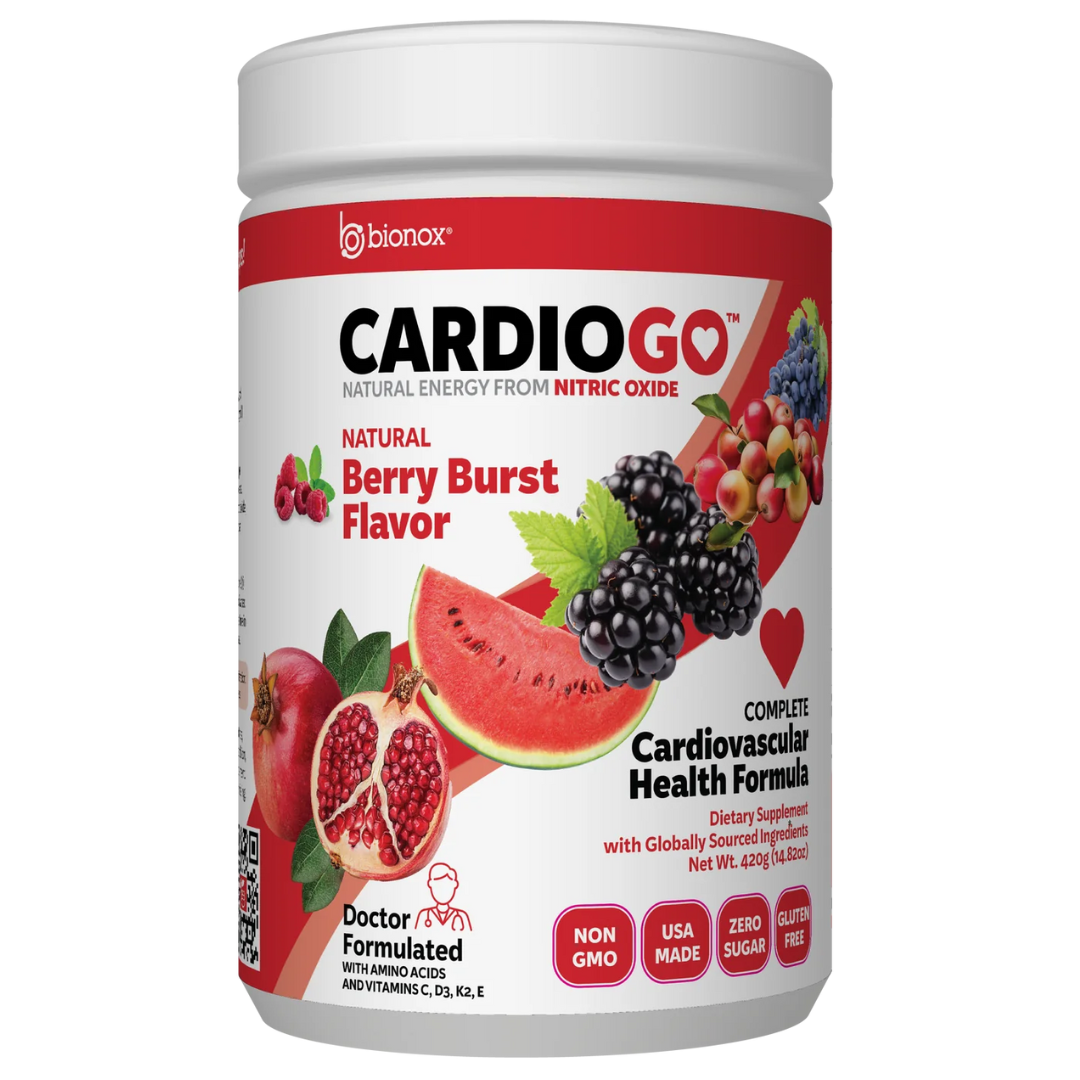 CardioGO powders are our strongest, most therapeutic strength products. CardioGO is your daily partner for sustained nitric oxide support, cardiovascular wellness, and nutrient efficiency. For those who demand more from their daily supplement, CardioGO delivers with scientifically-backed ingredients and a purpose-driven formulation.