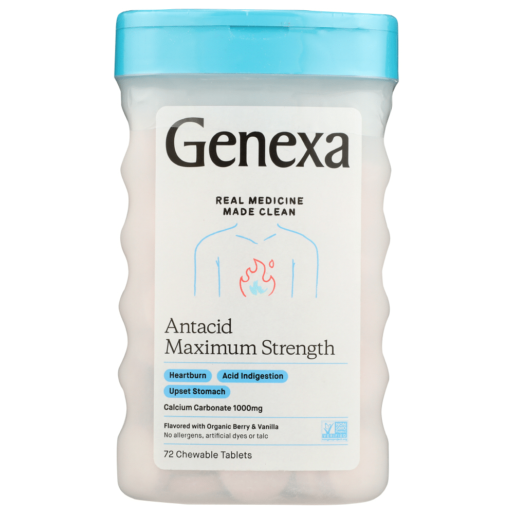 Real Medicine Made Clean Heartburn Upset Stomach Acid Indigestion Calcium Carbonate 1000 mg Non GMO Project Verified No Allergens, Artificial Dyes or Talc Certified B Corporation Certified Vegan Certified Gluten FreeUses - Relieves. Heartburn Acid indigestion Sour stomach Upset stomach associated with these symptoms.