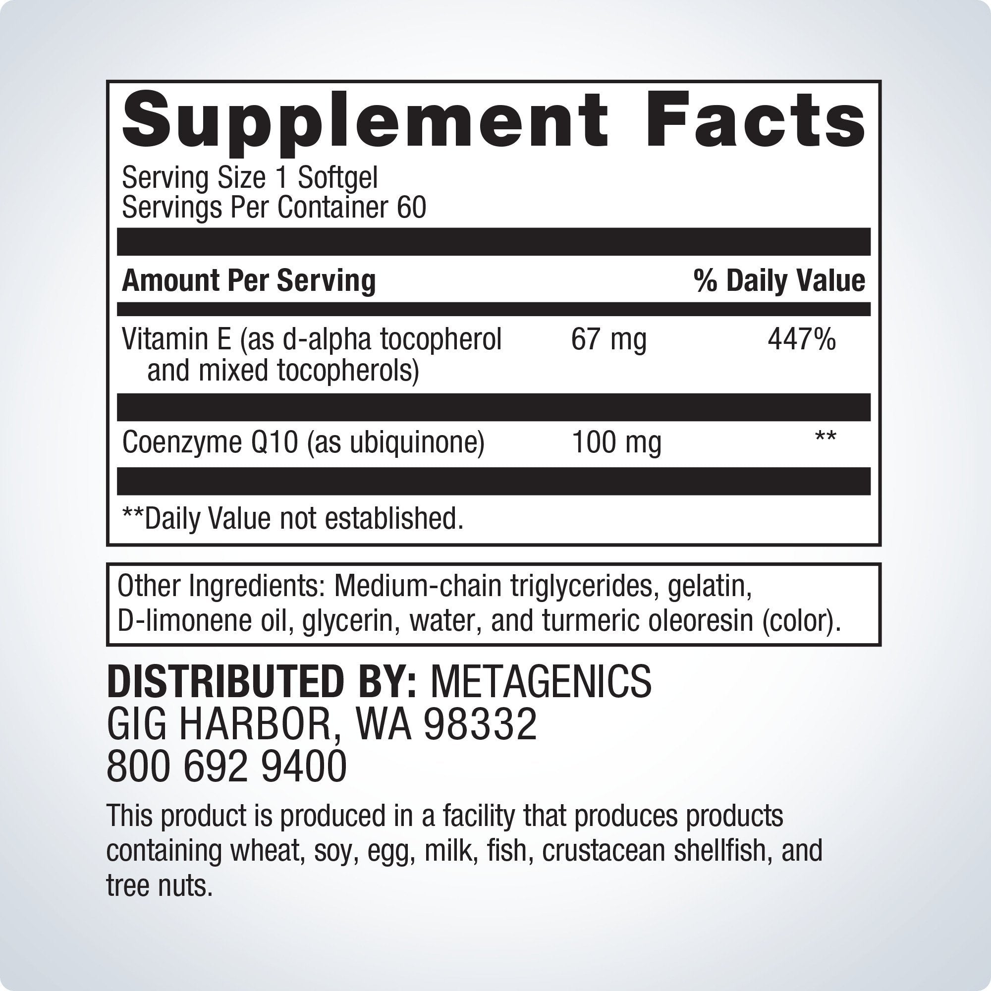 - Each softgel dose delivers 100 mg ubiquinone coenzyme Q10 (CoQ10)