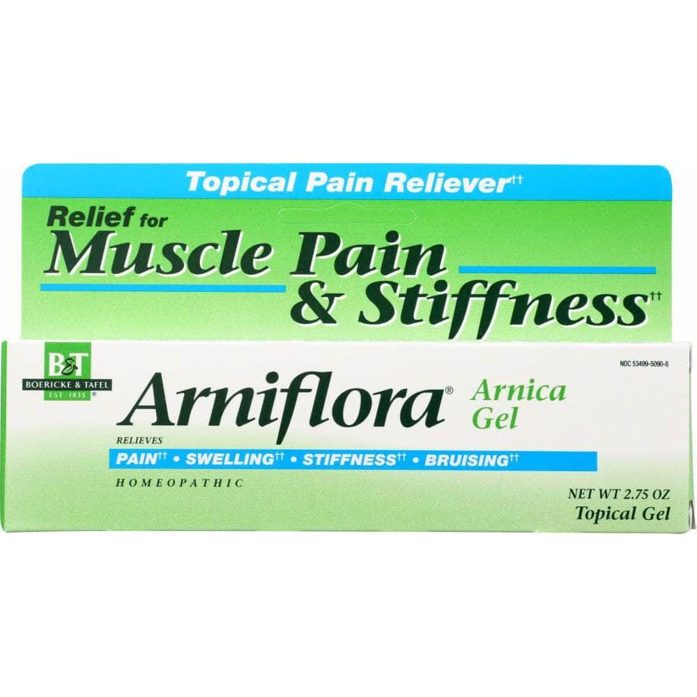 Relieves Pain, Swelling, Stiffness and BruisingArniflora Arnica Gel is a homeopathic preparation containing Arnica montana, which is used to relieve the after-effects of falls, blows, sports injuries and overexertion. It helps temporarily relieve the pain, swelling and muscle stiffness caused by over-exercising and physical trauma.