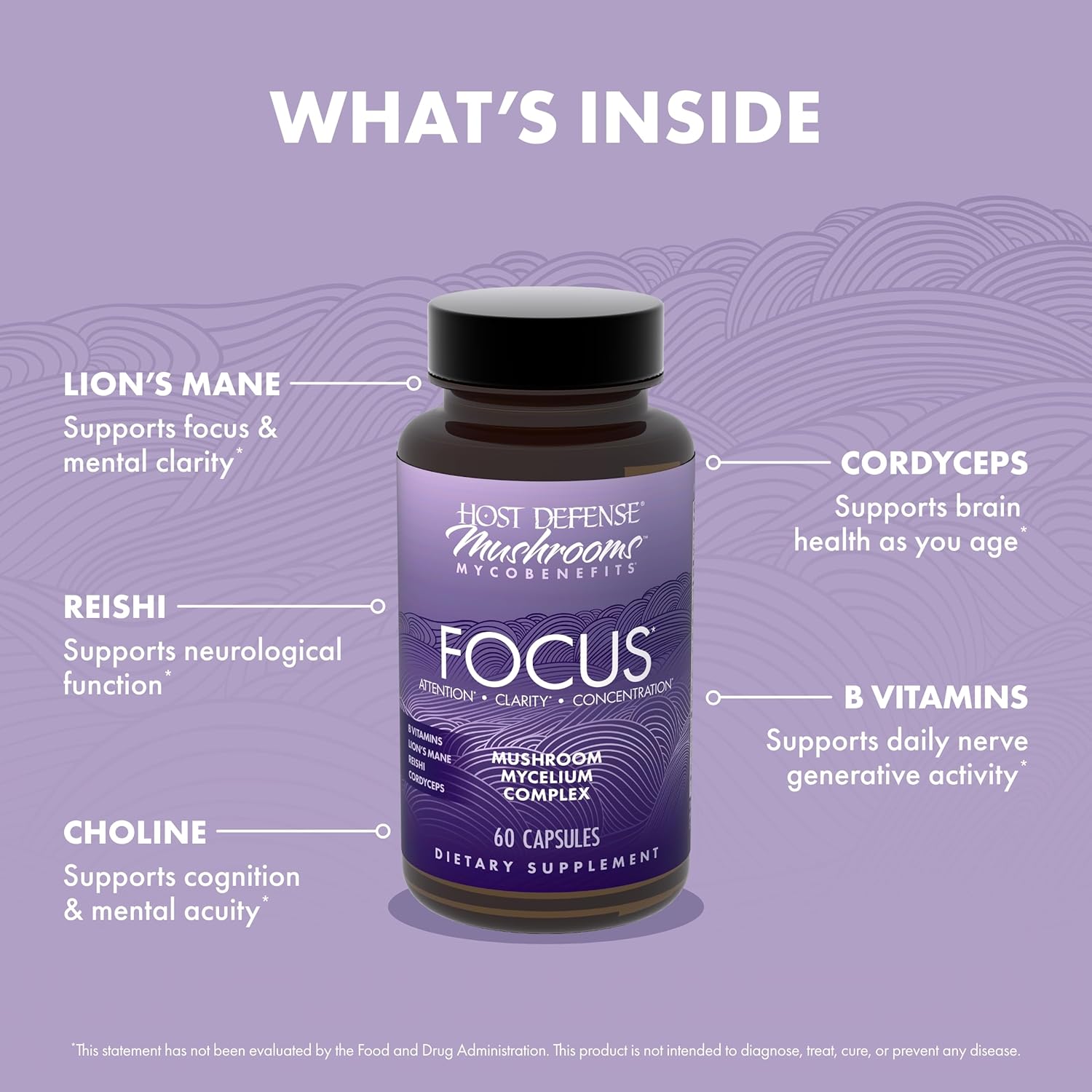 Focus Support Supplement: As a dietary supplement, take 2 mushroom capsules once daily with food or on an empty stomach, or as recommended by your healthcare advisor