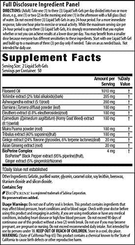 Directions: Take one (1) to three (3) Liquid Soft-Gels per day divided into two or more doses, e.g., one (1) or two (2) in the monring and one (1) in the afternoon wiht a glass of water. Do not exceed (3) Liquid Soft-Gels in any 24-hour period. For a more immediate response, take one hour prior to exercise or sexual activity. While the maximum serving size per 24-hour period is up to three (3) Liquid Soft-Gels, it is strongly recommended that you explore wheather or not you can achieve results at a lower dose per day. You may benefit from a smaller dose because everyone has different sensitivities to these ingredients. Start with one Liquid Soft-Gel and build up to a maximum of three (3) per day only if needed. Take on an as needed basis. Not intended for daily use.