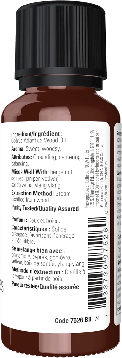NOW Essential Oils, Atlas Cedar Oil, Balancing Aromatherapy Scent, Steam Distilled, 100% Pure, Vegan, Child Resistant Cap, 1-Ounce