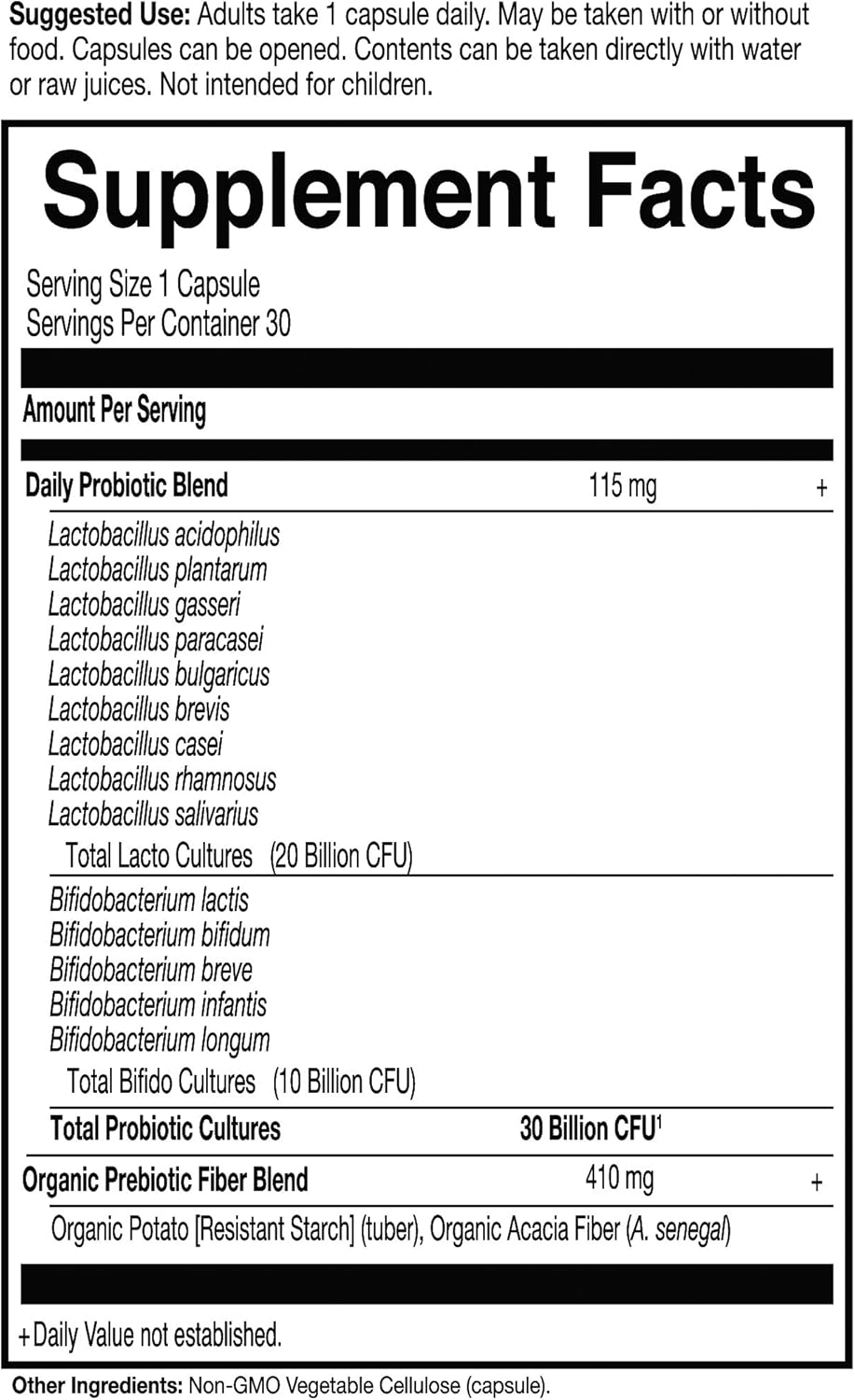 - Doctor Formulated Probiotics For Daily Digestive And Immune Support: Once Daily Probiotic provides 30 Billion CFU and 14 Probiotic Strains including Clinically Studied probiotics, plus Prebiotic Fiber, for daily digestive and immune health support