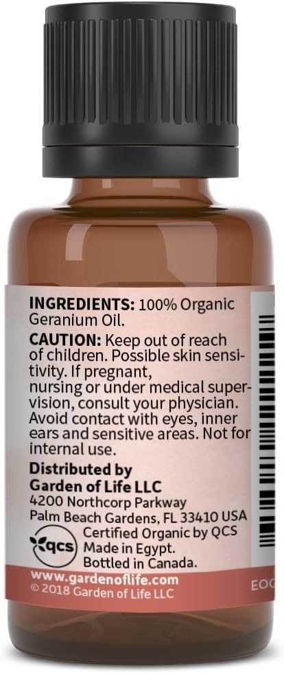 Garden of Life Essential Oil, Geranium 0.5 fl oz (15 mL), 100% USDA Organic & Pure, Clean,Undiluted for Diffuser,Aromatherapy,Meditation - Balance,Relaxation, Calming, Floral,Aromatic
