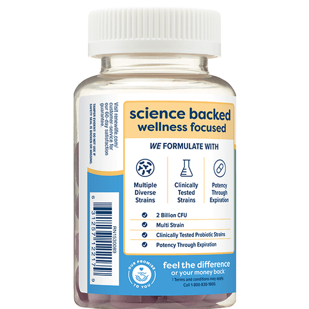 Renew Life Extra Care Digestive Prebiotic and Probiotic Gummies, Daily Supplement for Digestive and Immune Health, B. Coagulans and B. Subtilis, Dairy, Soy and gluten-free, 2 Billion CFU, 48 Count
