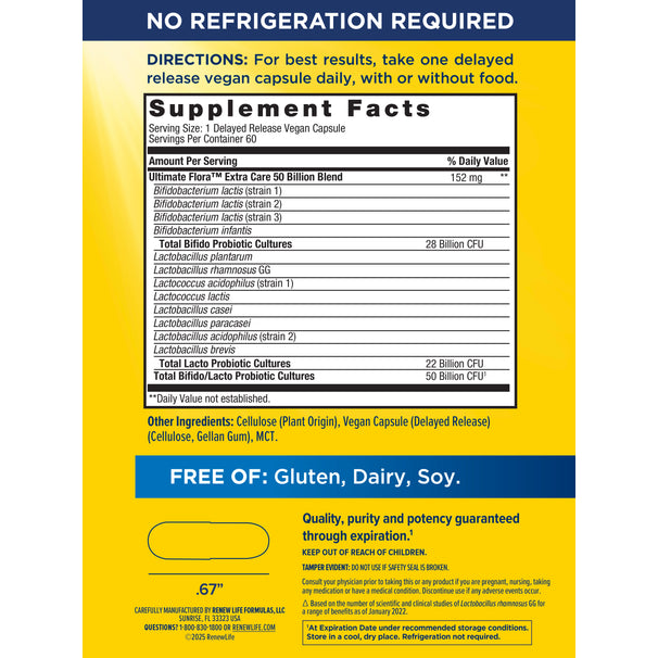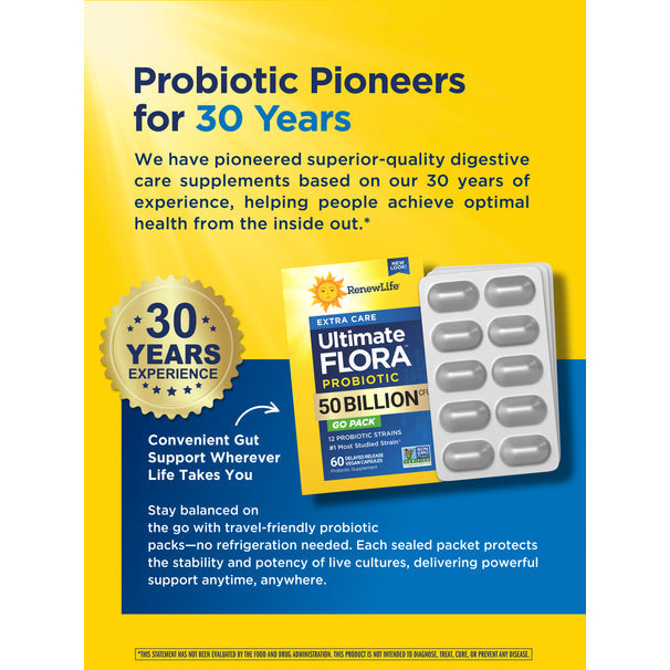Renew Life Extra Care Ultimate Flora Probiotic 50 Billion Go Pack, 60 CT
