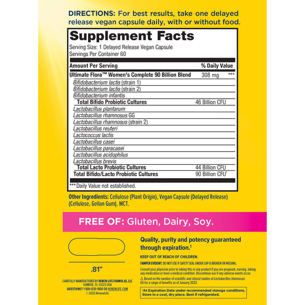 Women's Complete Probiotic 90 billion is a potent formula with 12 specially selected strains designed to re-establish digestive balance and support immune