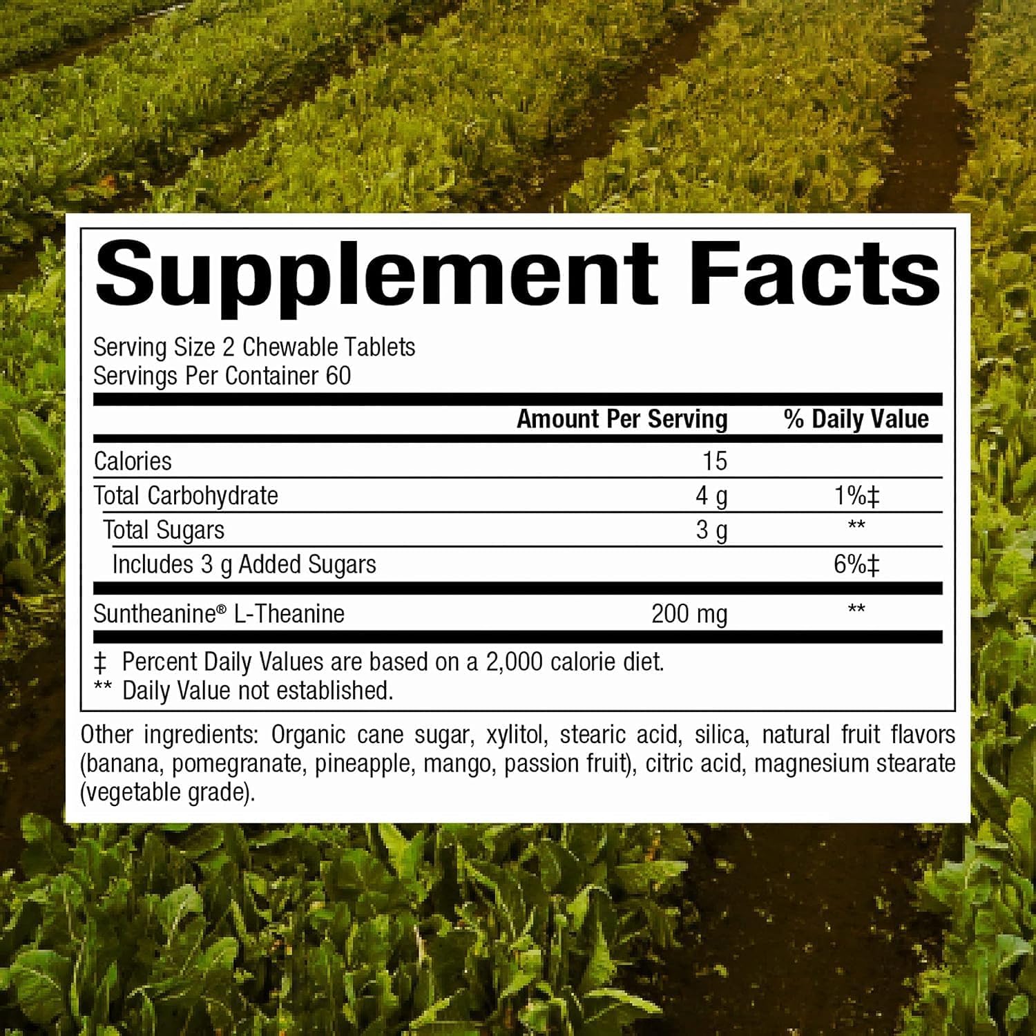 - We use a proprietary enzymatic process to produce pure L-Theanine for maximum effectiveness in a tasty tropical fruit-flavored chewable tablet
