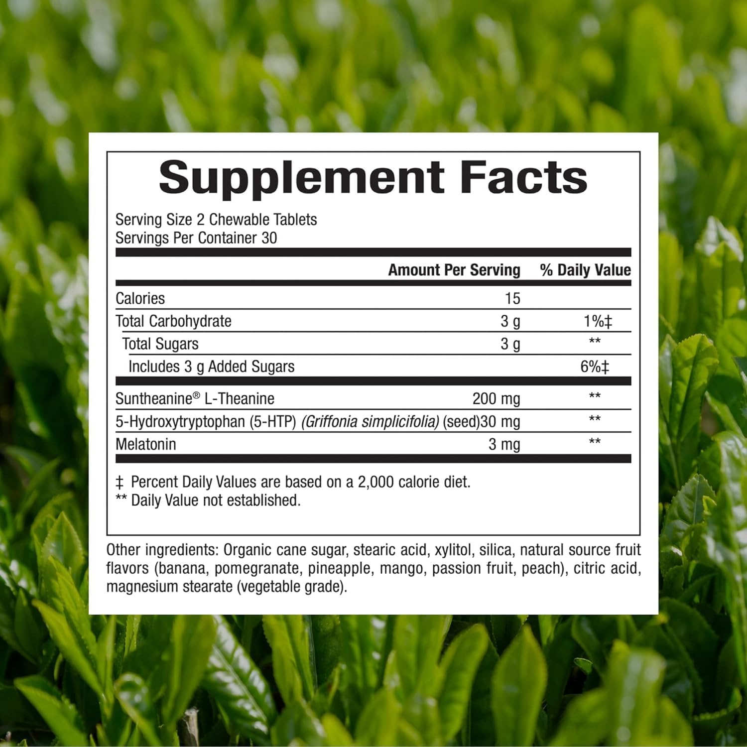 - Contains a unique 3-ingredient blend - Suntheanine L-Theanine (200 mg), 5-HTP (30 mg) and melatonin (3 mg) to support every stage of slumber*