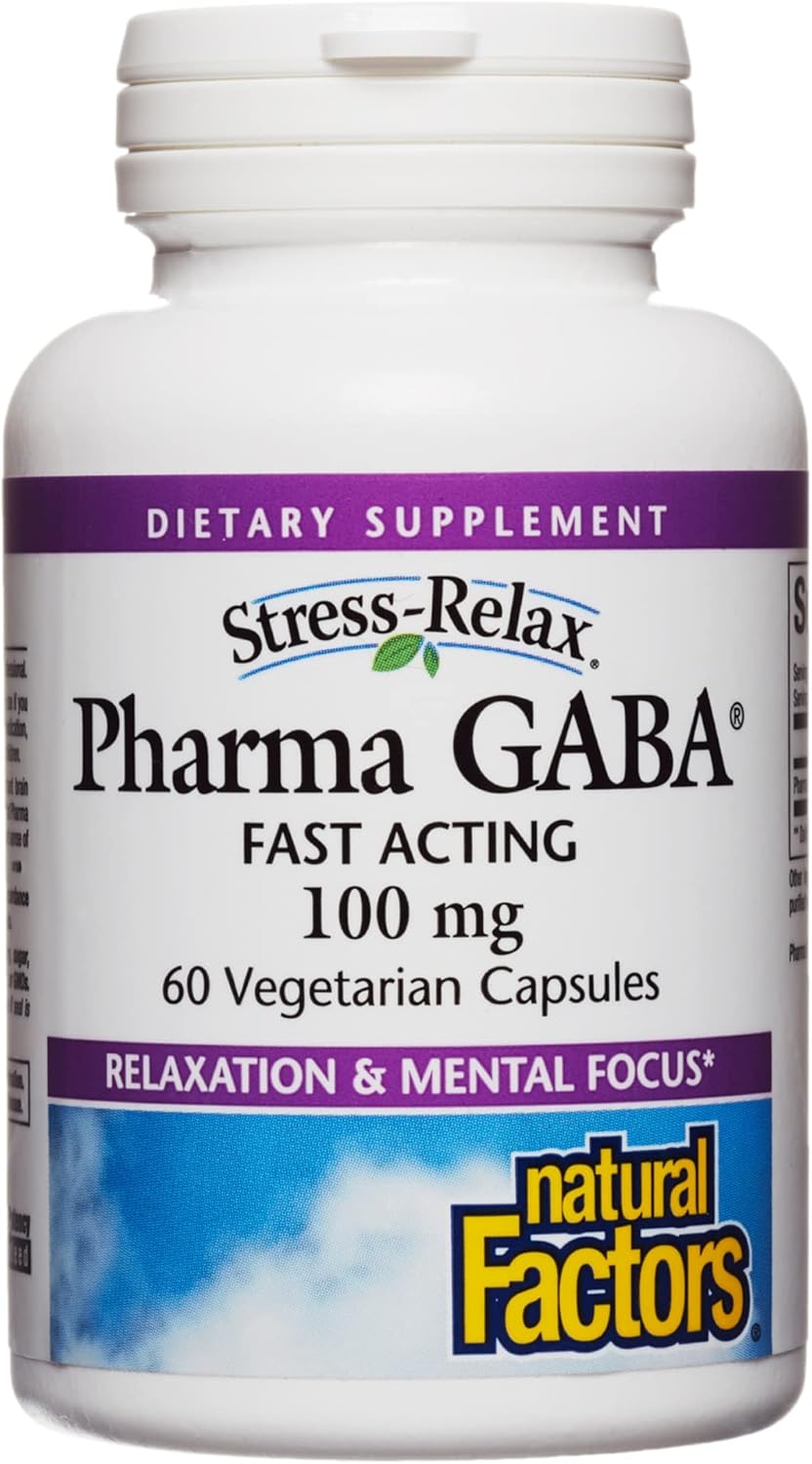 Stress-Relax Pharma GABA 100 mg by Natural Factors, Non-Drowsy Stress Support for Relaxation and Mental Focus, 60 vegetarian capsules