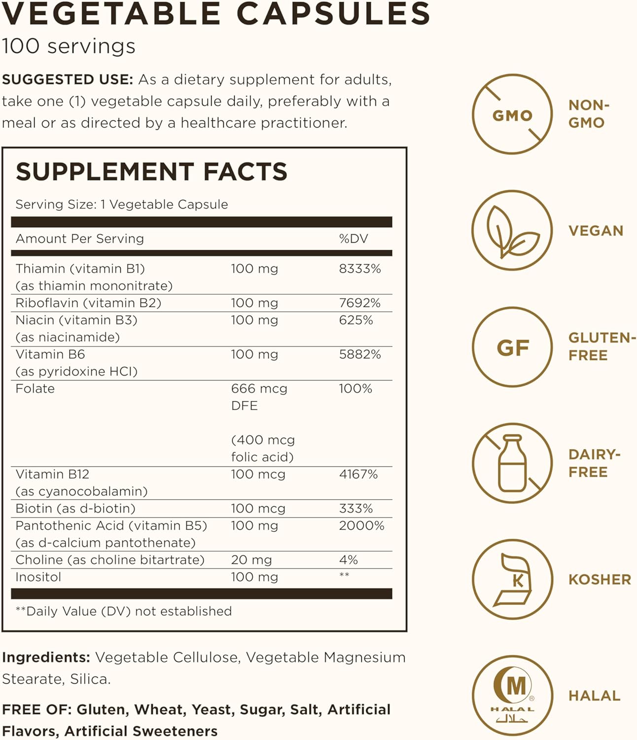 Solgar Vitamin B-Complex Extra High Potency Vegetable Capsules 100s