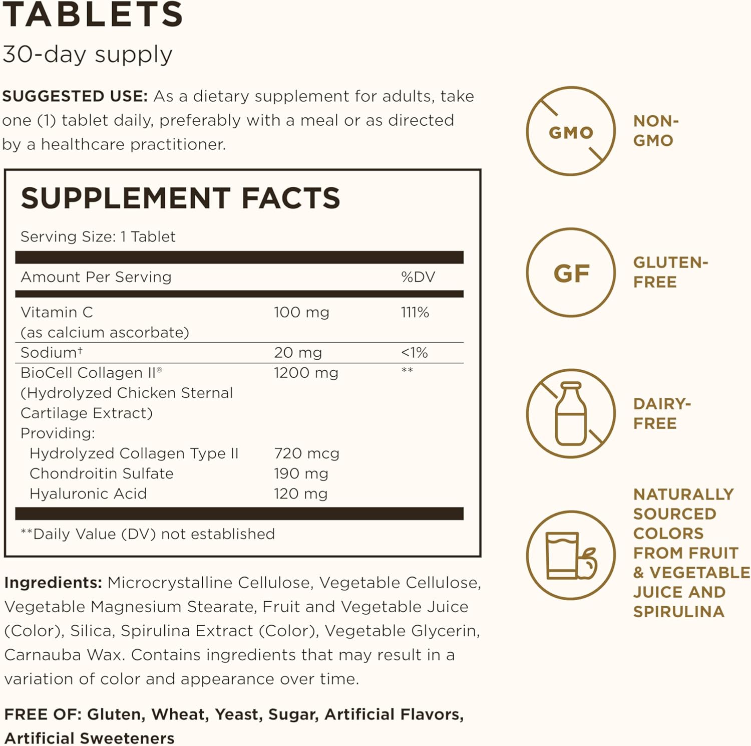 Solgar Collagen Hyaluronic Acid Complex, 30 Tablets - Hydrolyzed Collagen Type 2 - Helps with Fine Lines & Wrinkles - Boosts Skin Collagen & Elasticity - Non-GMO, Gluten & Dairy Free - 30 Servings