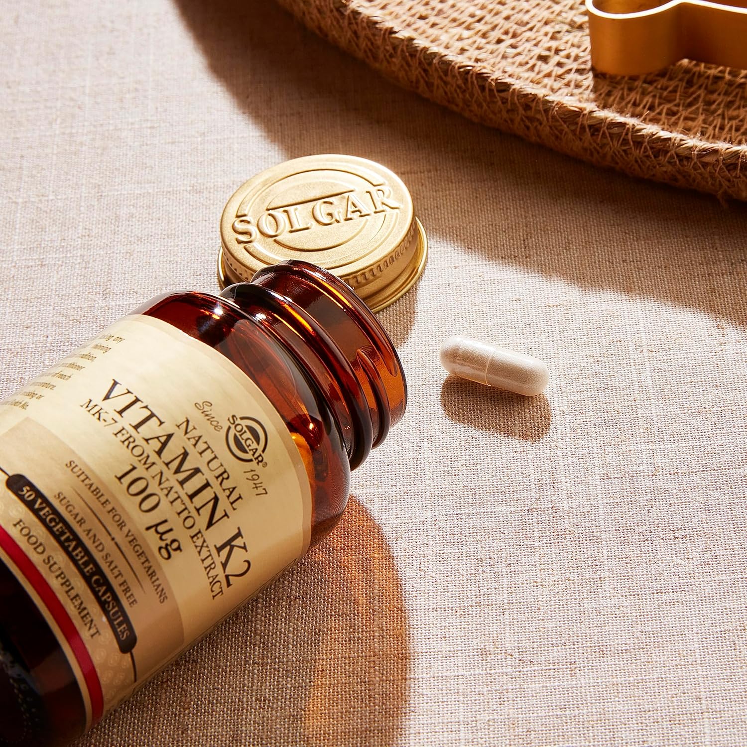 Solgar Vitamin K2 MK7 100mcg Vegetable Capsules Supports Bone Health Natural Whole Food Source from Natto Extract NonGMO Gluten Free Servings, Original, 50 Count