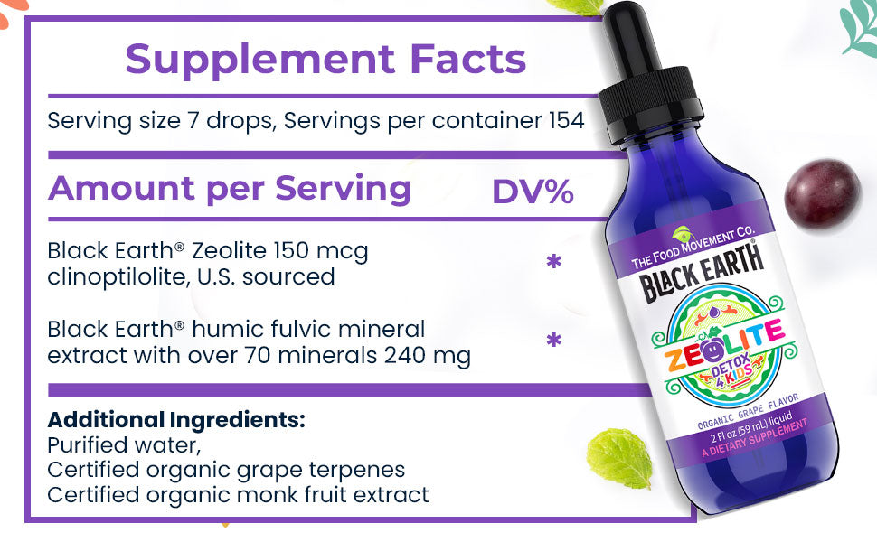 - With Black Earth Humic/Fulvic Acid - A unique trace mineral complex with over 70 minerals that support growing children.
