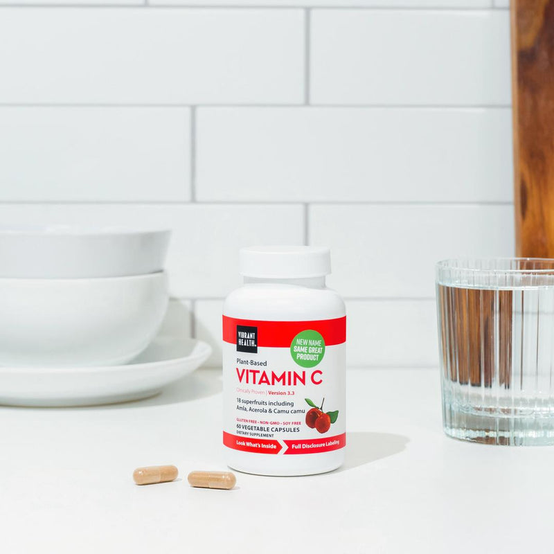 Our plant-based Vitamin C supplement delivers a highly bioavailable form of vitamin C from certified organic amla, acerola, and wildcrafted camu camu extracts. This whole-food formula is rich in naturally occurring bioflavonoids, helping your body absorb and utilize vitamin C more effectively.