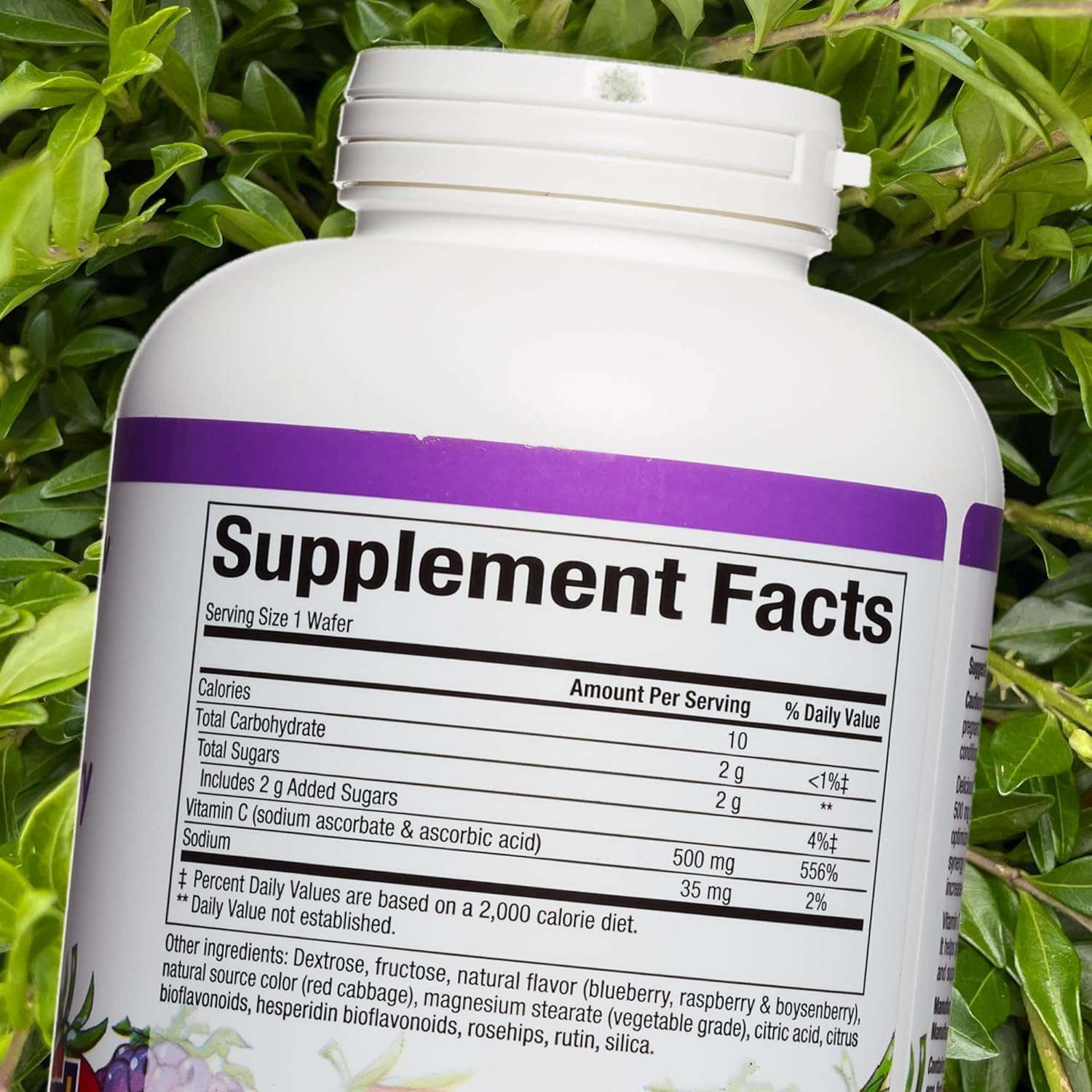 - 500 mg of vitamin C delivered in a fruit-flavored, chewable wafer that’s perfect for children. Aids healthy cell growth*