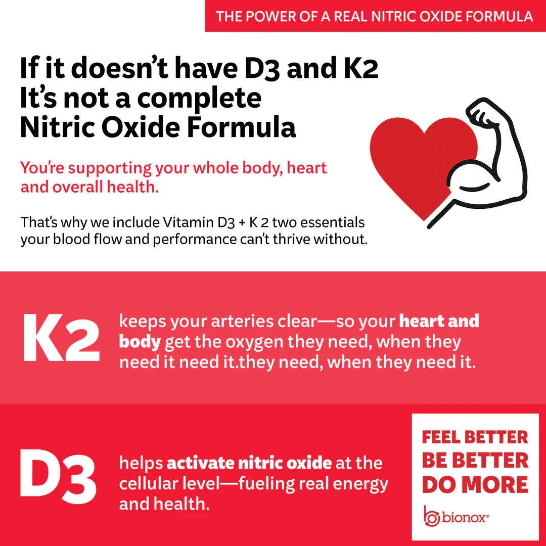 - Nitric Oxide Complex: L-arginine AKG + Citrulline for long-term nitric oxide support
