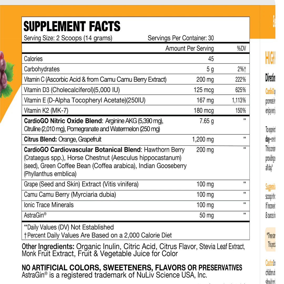 CardioGO powders are our strongest, most therapeutic strength products. CardioGO is your daily partner for sustained nitric oxide support, cardiovascular wellness, and nutrient efficiency. For those who demand more from their daily supplement, CardioGO delivers with scientifically-backed ingredients and a purpose-driven formulation.
