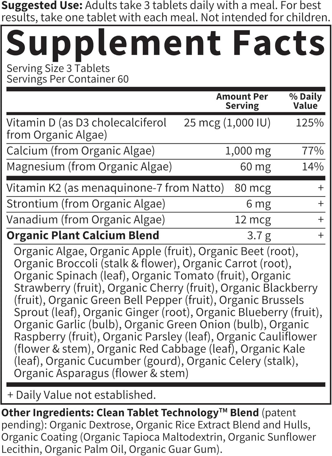 - PLANT-BASED CALCIUM ROCKS: Our 1,000mg plant based calcium supplement is made from easily digestible organic algae, not crushed rocks