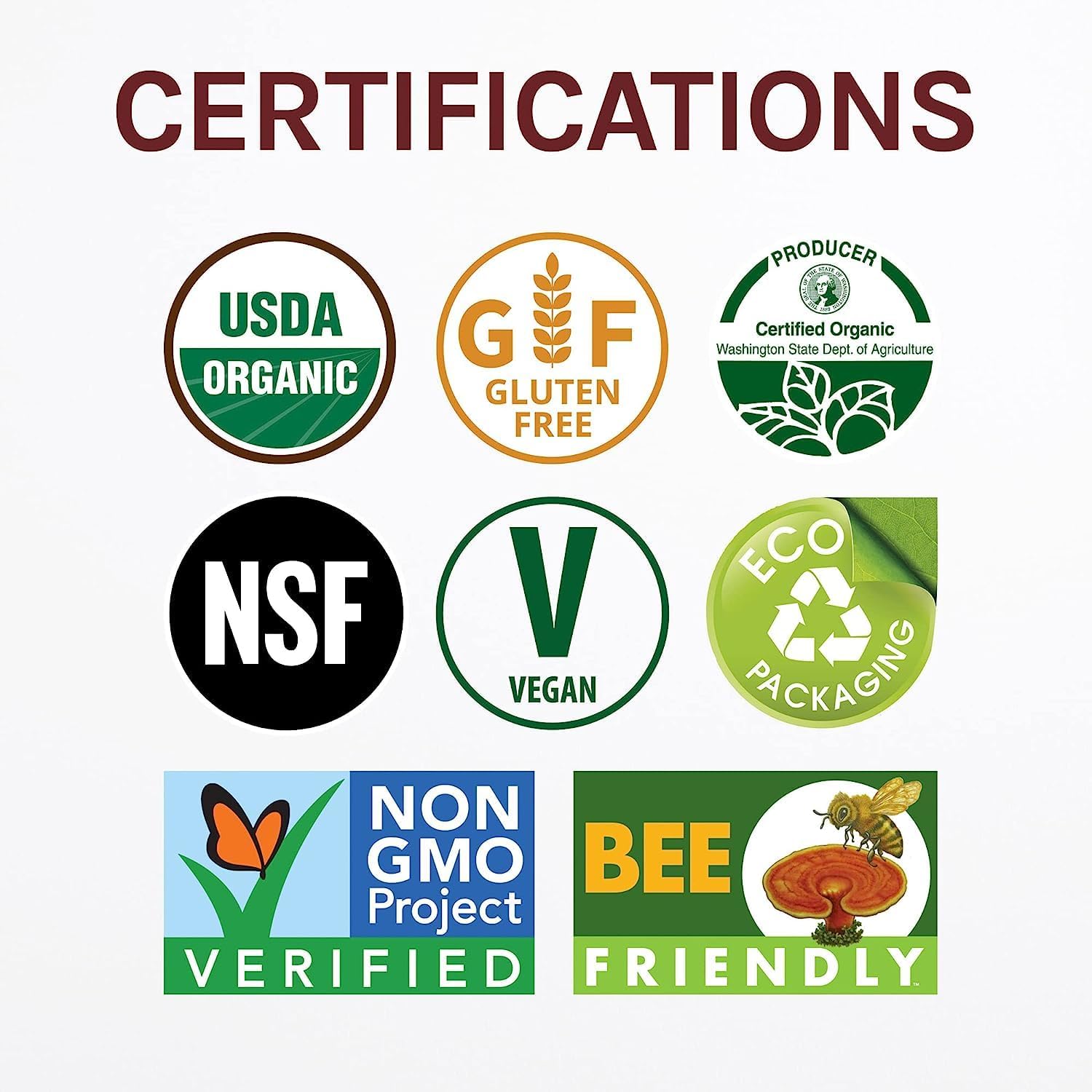 - Organic and Clean: Formulated with certified organic, non-GMO, and gluten-free mushroom mycelium grown in the USA, free from artificial additives or fillers.