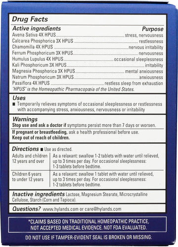 • 100 TABLETS = UP TO 100 DOSES of Hyland's Calms Forte tablets