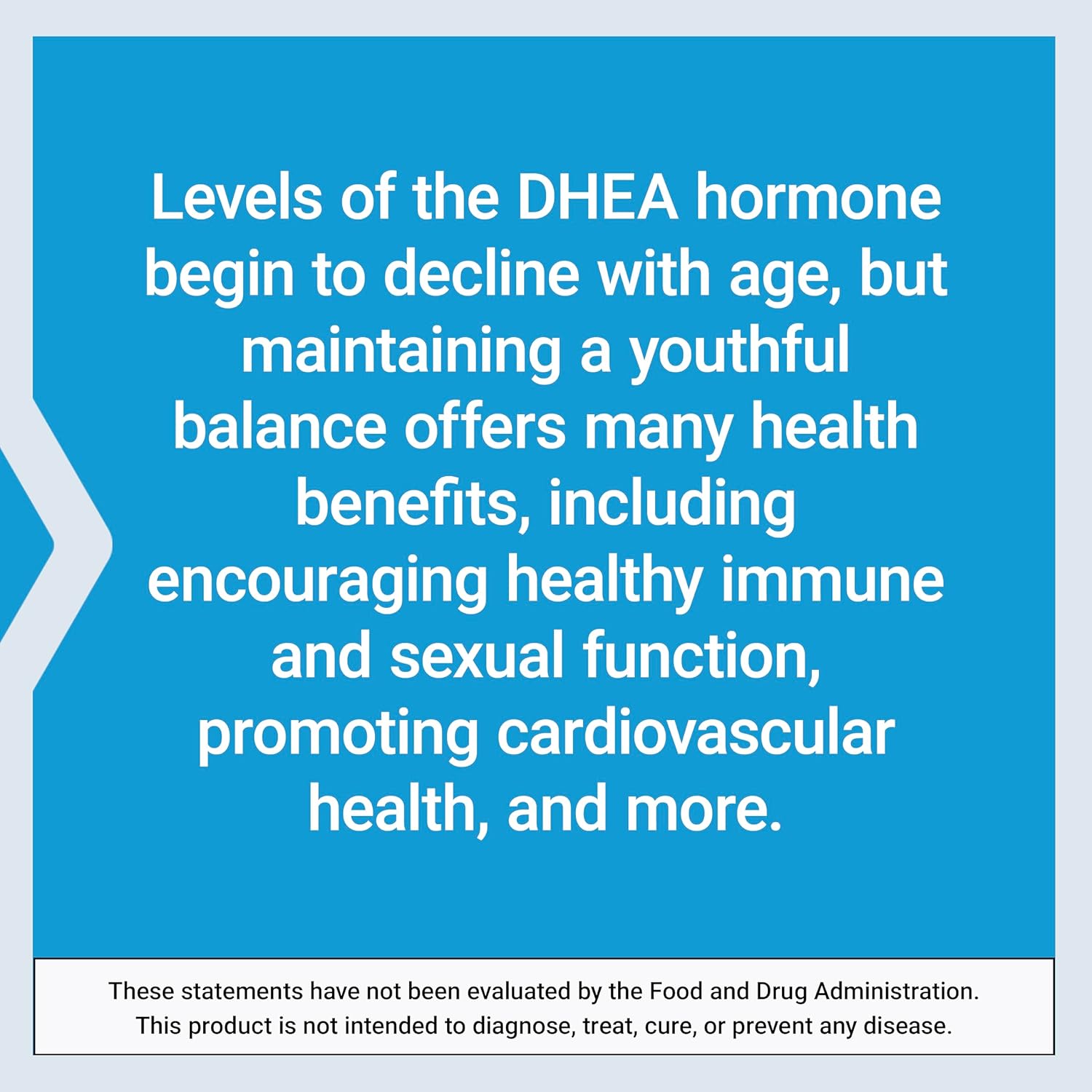 - Youthful hormone levels—DHEA is the body's most abundant circulating hormone. But levels of the hormone begin to decline over time. Supplementing with DHEA can help you support healthy hormone levels and promote healthy immune function and circulatory health. It also helps maintain your healthy mood, lean muscle mass, sexual function and more.