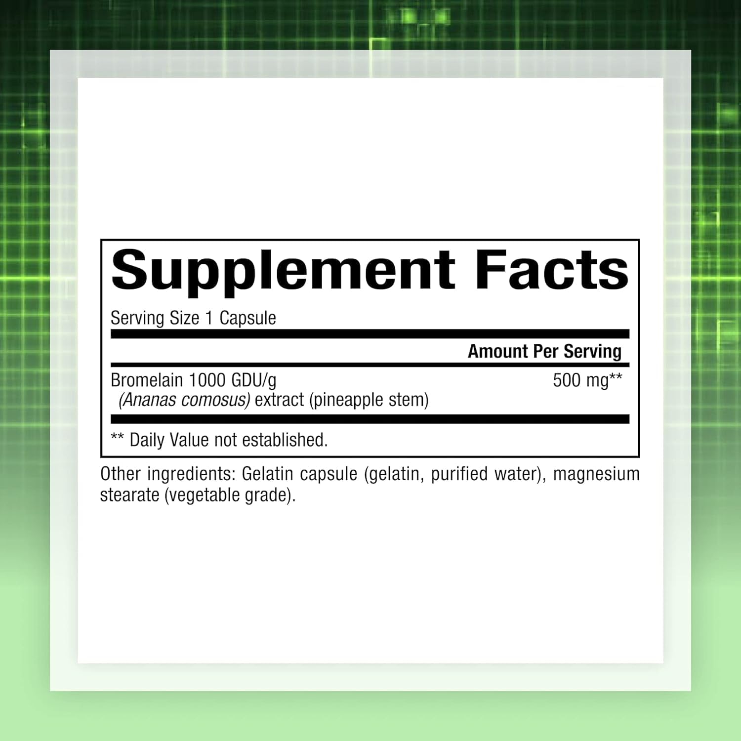 - We only use extra-strength bromelain, providing 1000 GDU (gelatin digesting units) and 1500 MCU (milk clotting units) of enzyme activity per gram