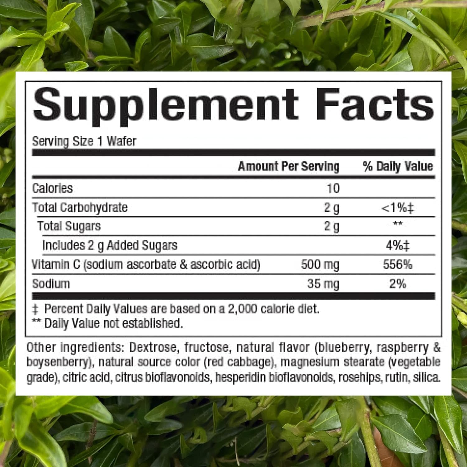 - 500 mg of vitamin C delivered in a fruit-flavored, chewable wafer that’s perfect for children;* Protects against free radical damage and aids healthy cell growth*