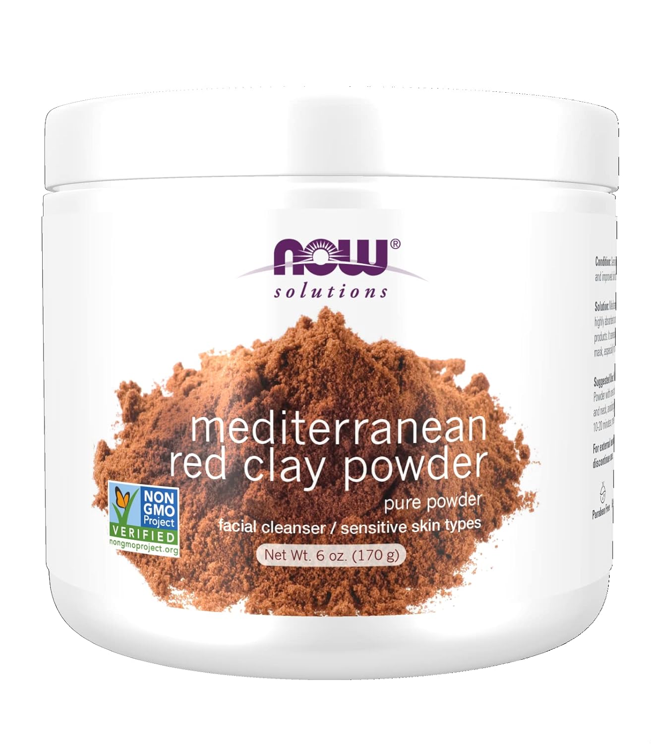 NOW Foods Solutions, Mediterranean Red Clay Powder, Pure Powder for Sensitive Skin Facial Mask, 6-Ounce