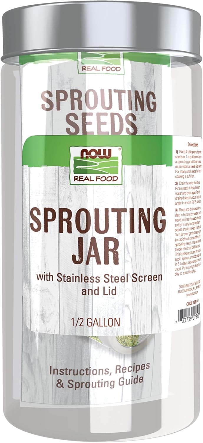 NOW Foods, Sprouting Jar with Stainless Steel Screen, Designed for Legumes, Seeds and Grains Sprouting, 1 Jar