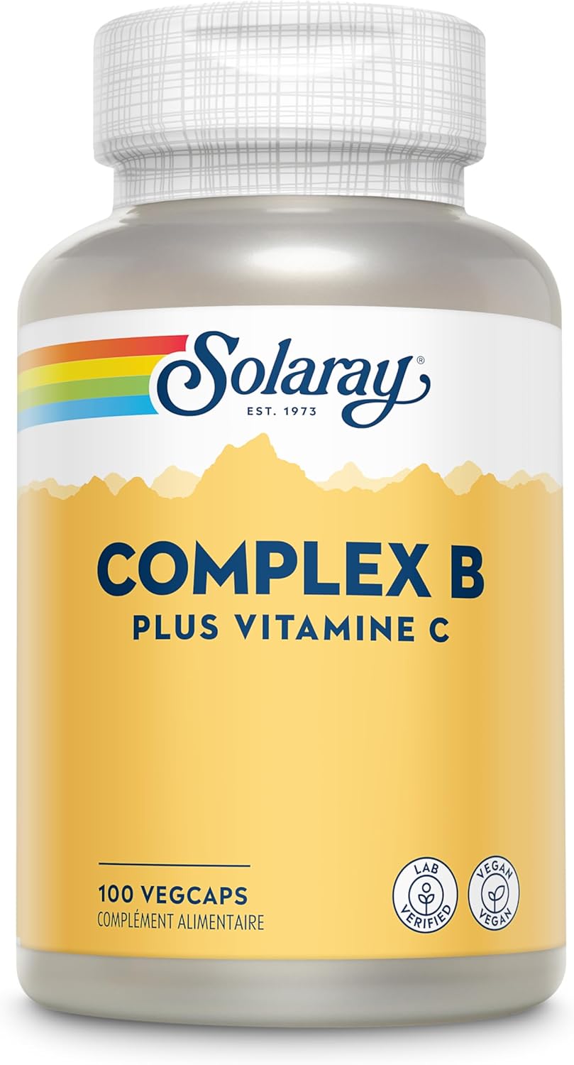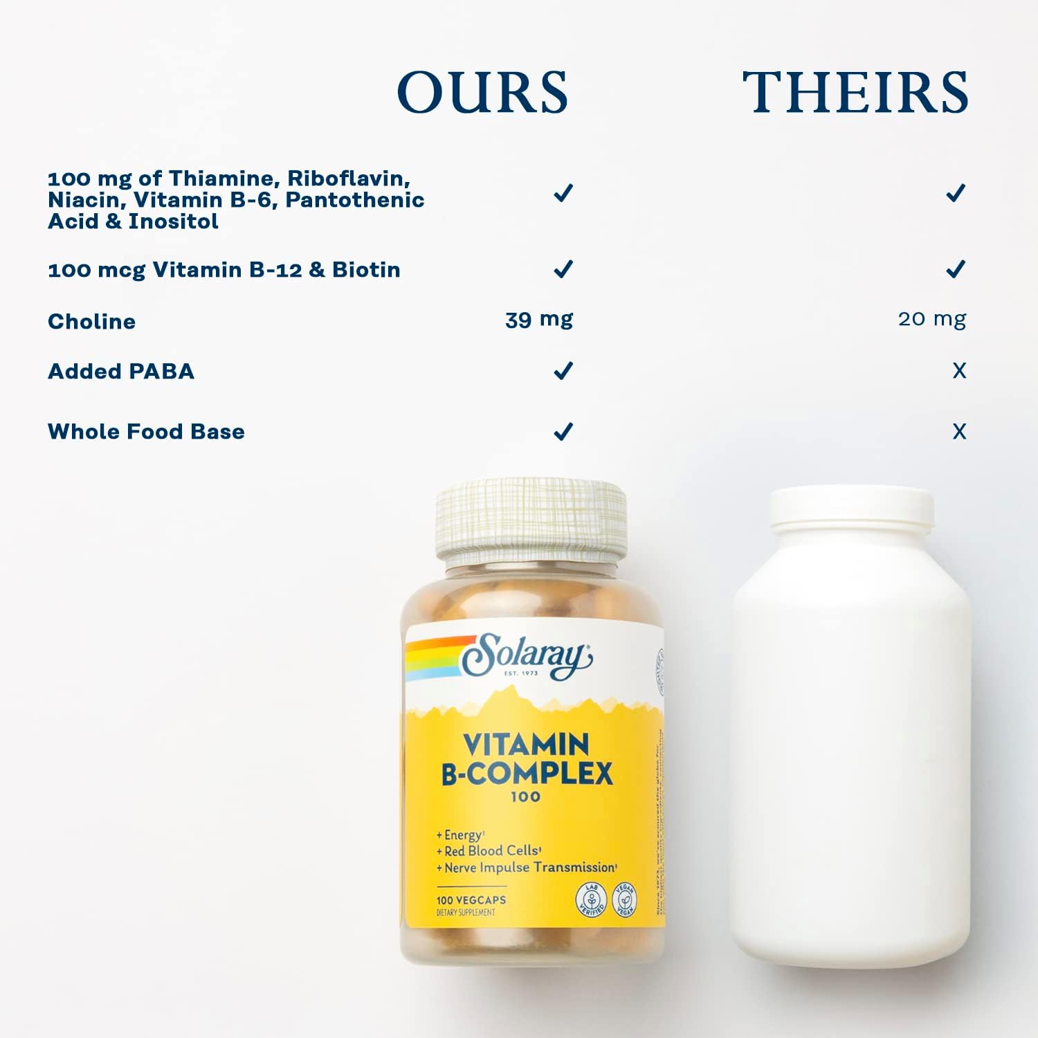 SOLARAY Vitamin B Complex, Healthy Energy Supplement, Red Blood Cell Formation, Nerve & Immune Support, Super B Complex Vitamins with Folic Acid, Vitamin B12, Vitamin B6 & More, Vegan, 100 VegCaps