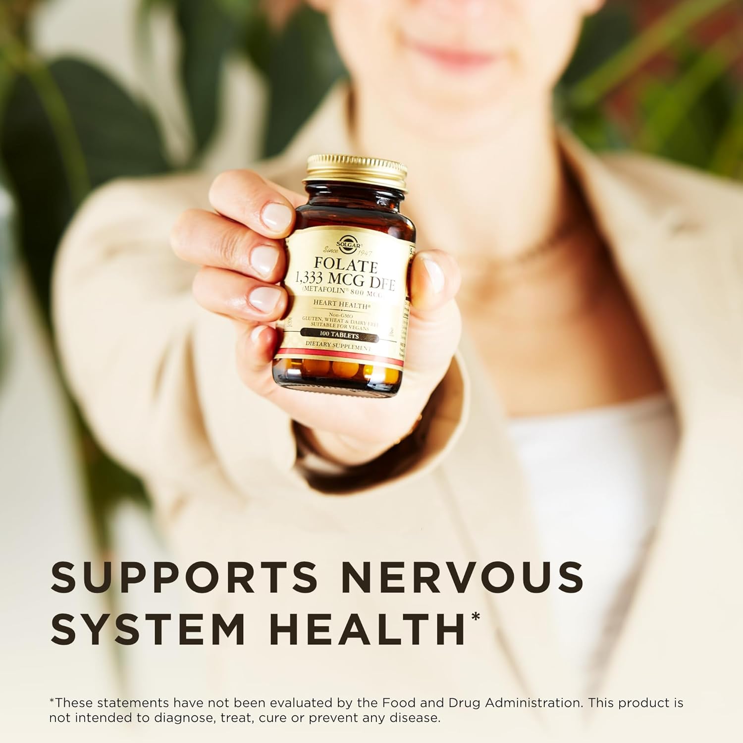 - Gluten, Wheat & Dairy Free; Solgar Folate is non-GMO, vegan, kosher, and free of: gluten, wheat, dairy, soy, yeast, sugar, sodium, artificial flavor, preservatives, and color